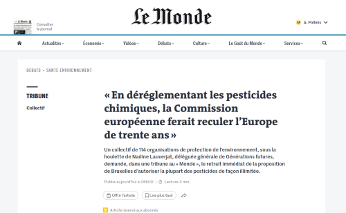 Les citoyens sont de plus en plus nombreux à se mobiliser pour un monde sans pesticides. En 2020, ils ont été plus d’un million à soutenir une initiative citoyenne européenne (ICE) demandant la sortie complète d’un modèle agricole dépendant de la chimie, d’ici à 2035. Encore récemment, à l’été 2025, plus de deux millions de Français se sont mobilisés en un temps record contre la proposition de loi Duplomb et le potentiel retour de l’acétamipride, un pesticide de la famille des néonicotinoïdes, qui menace les abeilles et l’ensemble de la biodiversité.
