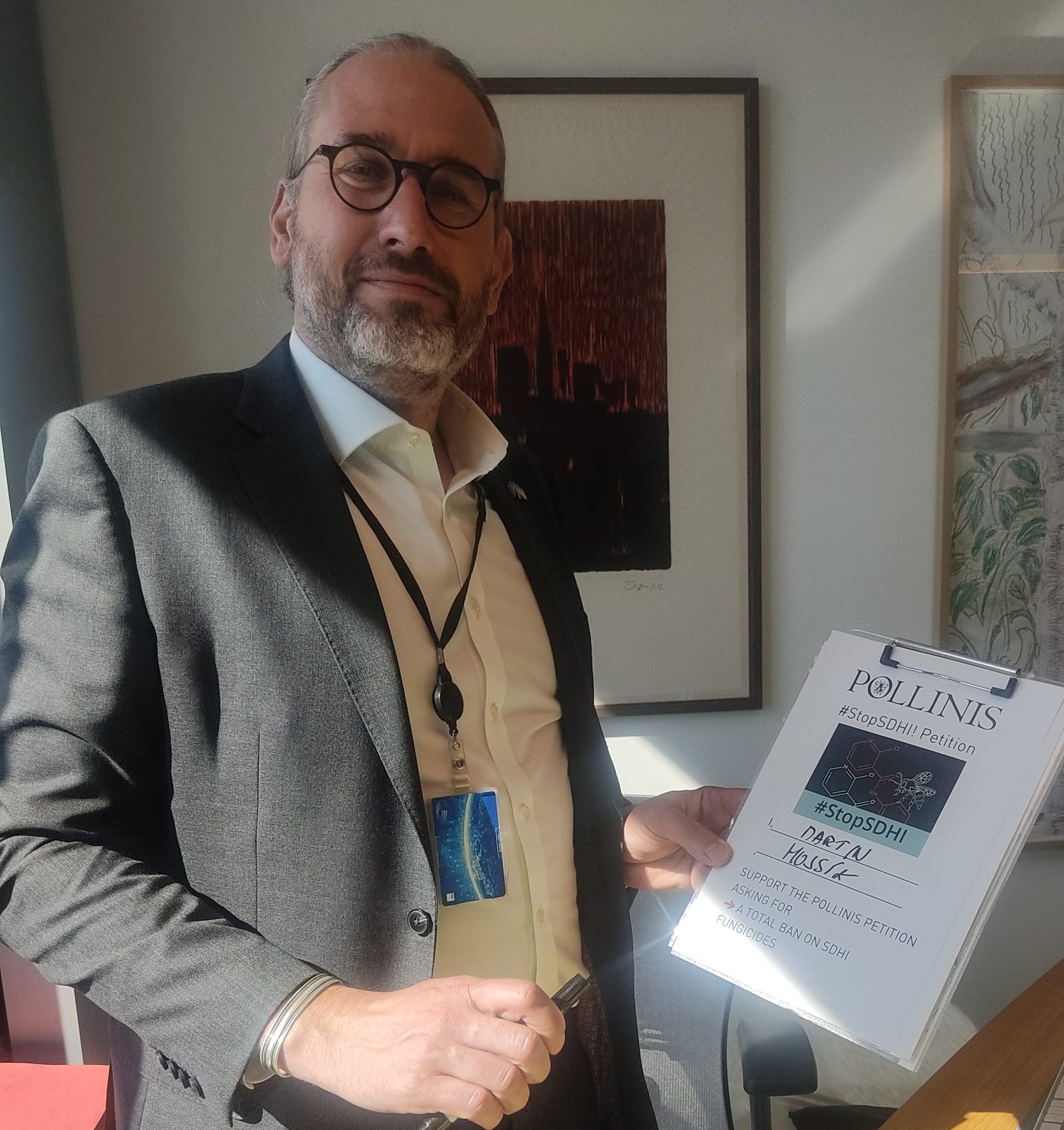 Lors de l’événement organisé par POLLINIS à Bruxelles, de nombreux eurodéputés ont rejoint la mobilisation, et soutiennent désormais officiellement la pétition de l’ONG. La pétition demande « le retrait immédiat de toutes les substances fongicides de la classe SDHI tant que des tests additionnels tenant compte de leurs mécanismes de toxicité propres n’auront pas été menés, ainsi que la réforme du processus d’homologation des pesticides en y intégrant ces nouveaux tests. »
